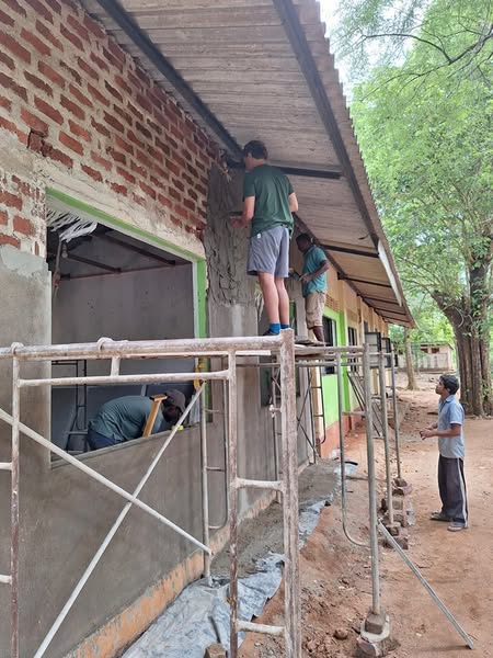 Zes KnappeKoppen van Nederlandse Universiteiten kwamen naar Anuradhapura om een bouwproject op de Suchirithagama School uit te voeren. Deze school heeft van Sri Lankanen in Amerika 10 laptops gekregen maar er is op de school geen goed lokaal voor beschikbaar. Nu de KnappeKoppen Claartje, Pia, Sieb, Gijs, Wouter en Floris hier samen met een mason, carpenter en elektricien hun schouders er onder zetten komt het dik voor elkaar. De eerste dag was even wennen maar toen zij op elkaar ingespeeld waren ging het voortreffelijk. In deze tropische temperatuur stucadoren, cement mengen, zand zeven, enz. is een stevige prestatie. Sri Lanka Support waardeert de inzet van deze studenten die zich inzetten voor deze dorpsschool enorm. De 250 leerlingen van de Suchirithagama School kijken hun ogen uit naar “de foreigners” die voor hen aan het werk zijn.