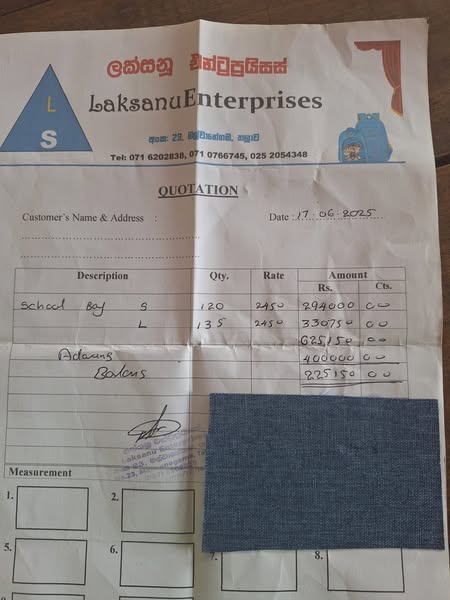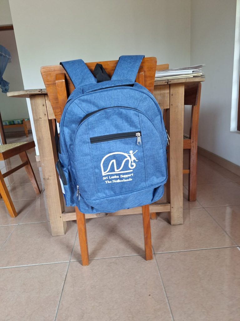 Mr. Pushpanath heeft na 3 jaar voor Sri Lanka Support materiaal met een mooie denim kleur gevonden om de schooltassen voor de sponsorkinderen voor 2026 te maken. In juni bereiden we deze bestelling altijd voor en de laatste week van oktober worden de tassen geleverd. Dan kunnen we de schoolmaterialen en schoenen/kousen regelen en in december hebben alle sponsorschoolkinderen alles voor het nieuwe schooljaar 2026, dat loopt van 1 januari tot 31 december. Dit jaar hebben we ook gekeken of we een ander bedrijf hiervoor konden inschakelen maar Laksana Enterprices, die de schooltassen altijd levert, heeft een betere kwaliteit en een betere prijs. Het wordt dus een denim kleur schooltas met witte opdruk met ons logo. Ook blijft de Nederlandse vlag aan de zijkant. Alle eer voor Mr. Pushpanath en zijn team!