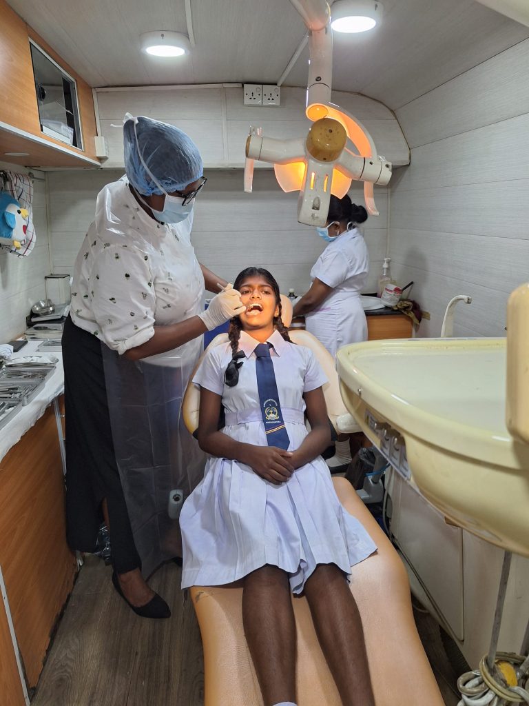 Op de Mahawannammaduwa School waren we verbaasd daar een speciale tandartsbus te zien. Op de Elayapaththuwa School, waar veel leerlingen bruine tandaanslag hebben, zagen we dat er tandzorg in een speciaal gebouwtje bij de school was. Maar dit was nieuw: eenmaal per jaar komt een tandarts met een speciaal ingerichte bus naar de school om bij alle leerlingen van grade 10 (16 en17 jarigen) het gebit na te kijken. In de bus is zelfs een echte tandartsstoel aanwezig. Ze krijgen dan advies over mondhygiëne en om beter te poetsen. 16/17 jaar is wel laat om daarmee te beginnen, maar beter laat dan nooit. Heel graag willen ze tandzorg voor jongere kinderen, maar daar is nog geen geld voor. Ook niet alle scholen in North Central Province hebben tandzorg, maar het is een serieus begin om de kinderen te leren goed voor hun gebit te zorgen.