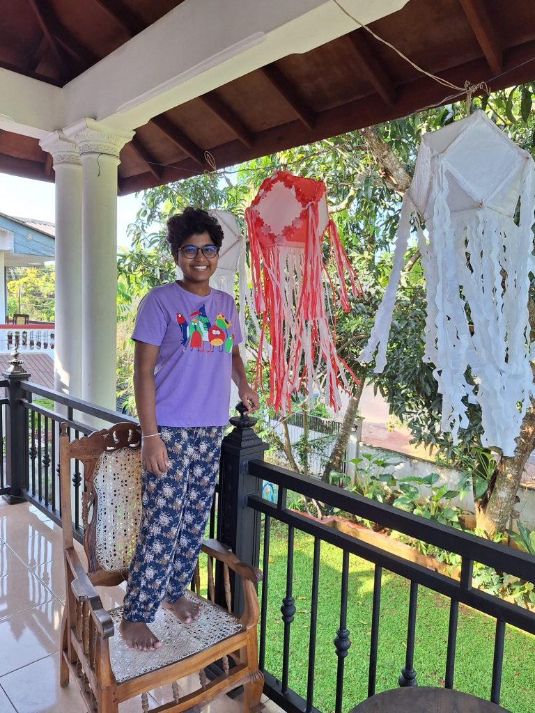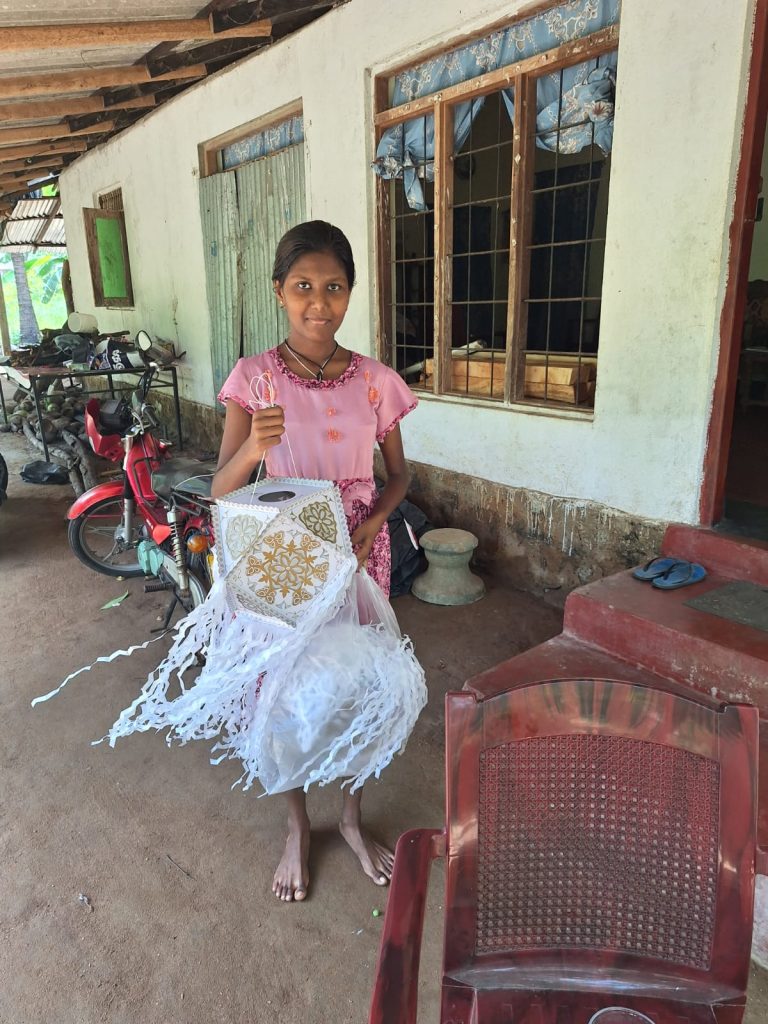 Een van de meest belangrijke Boeddhistische feesten is Vesak, feest van het licht. Natuurlijk zijn 12 en 13 mei alle scholen dan weer gesloten, maar voorafgaand aan Vesak worden er op de scholen Boeddhistische vlaggen opgehangen, de tempeltjes worden schoongemaakt, en er worden bloemen gezet. Overal op het schoolterrein zijn schoolkinderen bezig met het maken van Vesak lantarens. Aan lesgeven komt men niet toe. Ook in de thuissituaties treffen we, en dat is heel bijzonder, opeens overal Vesak activiteiten aan. Sri Lankanen zijn erg goed in last minute acties.