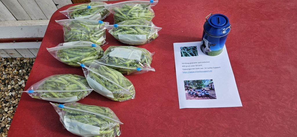SLS is afhankelijk van jullie donaties en giften. In de eerste plaats hebben we voor de sponsorkinderen sponsors die € 120 p.j. (liefst in het eerste kwartaal) storten, goed voor de schoolbenodigdheden voor het hele schooljaar voor elk kind. Om projecten voor scholen en gezinnen te kunnen realiseren, hebben we extra middelen nodig. Gelukkig krijgen wij elke keer verrassende donaties. Zo kregen we deze week een foto van sponsors die sperzieboontjes uit eigen tuin verkopen voor SLS en begin oktober vraagt een van onze sponsors op haar verjaardag om een gift voor SLS i.p.v. bloemen of een cadeau. De stagiaires die 3 maanden komen, houden onder familie en vrienden een actie om de gezinnen waar zij stage gaan lopen een extra voedselpakket te geven, of iets anders wat ze dringend nodig hebben. Ook voor het SLS-fietsenfonds krijgen we regelmatig een gift. Dus heeft u een idee om de allerarmsten op Sri Lanka hoop te geven, laat het ons weten!