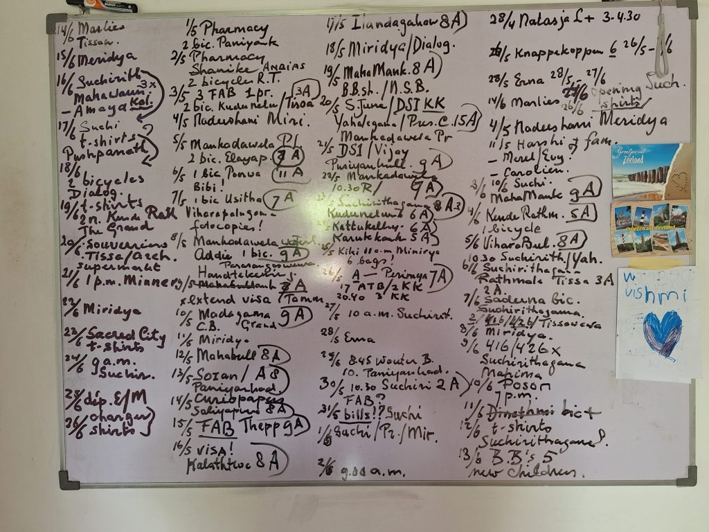 Bij het bezoeken van de sponsorfamilies ervaren we veel emoties. Een vader is overleden aan een hartaanval, een vader door overmatig alcohol gebruik. Enkele moeders zijn voor een hele lange periode vertrokken naar Koeweit om ‘housemaid’ te worden. Daar worden de oma’s ingezet om voor huishouden en kinderen te zorgen. Een vader verliet zijn gezin om met een andere vrouw verder te gaan. Bij een gezin is de watermotor waarmee het water uit de put wordt opgepompt, gebroken en niet meer te repareren. Bijna elke sponsorfamilie heeft schulden en dat is geen wonder, de prijzen zijn enorm gestegen en de meeste lonen zijn niet of amper gestegen. Economisch is Sri Lanka zo afhankelijk van het IMF. Ook is alle USAID-steun volledig gestopt. Iedereen verwacht van de nieuwe president Anura Kumara Dissanayaka wonderen, maar het is voor hem een onmogelijke opgave.